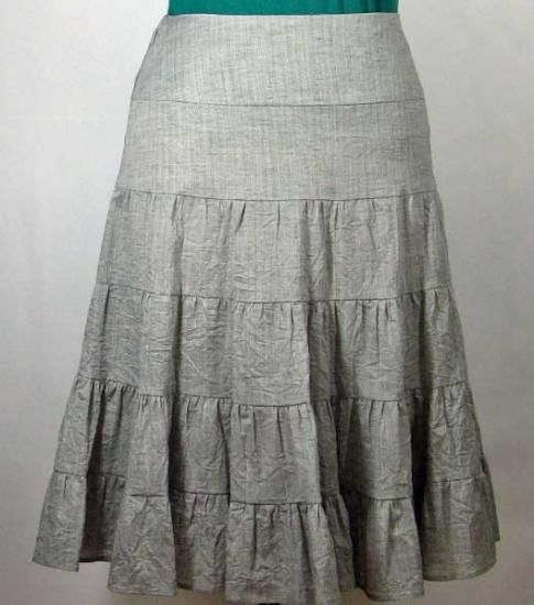 バランスの取れたティアードスカートです。段数を少なくして短い丈にしてもバランスは崩れません。反対に段数を増やして丈を長くしても素敵です。見本素材はシャンブレーです。 難易度(3/5)★★★☆☆