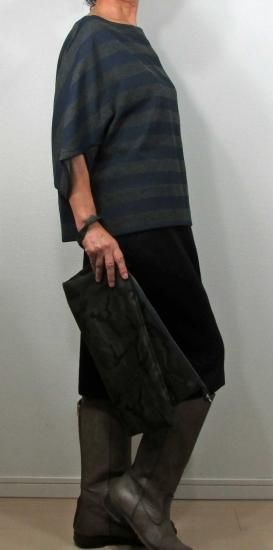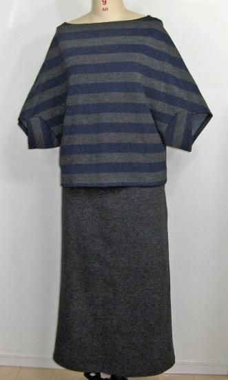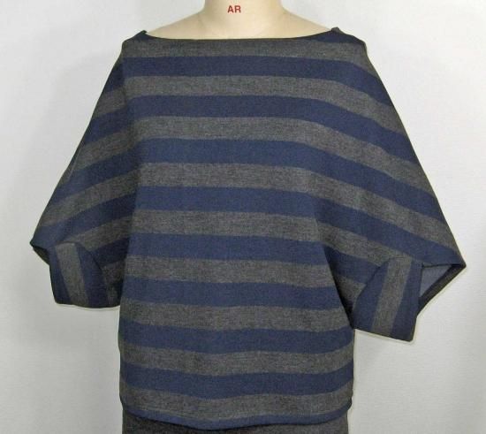 とても面白い構造のニットブラウスです。パーツは3パーツなので、短時間で完成します。頭を悩ますのもいいですね。ほんの少し考える時間が必要ですが、構造が理解出来たら、すぐ完成させることが出来ます。衿ぐり側でちょっと上がったボートネック衿ぐりのラインが綺麗です。素材は張りのある素材でも薄地の素材でもオーケーです。秋はハイネックのプルをコーディネートすると綺麗ですよ。「モデル9号着用:身長155cm」 難易度(3/5)★★★☆☆